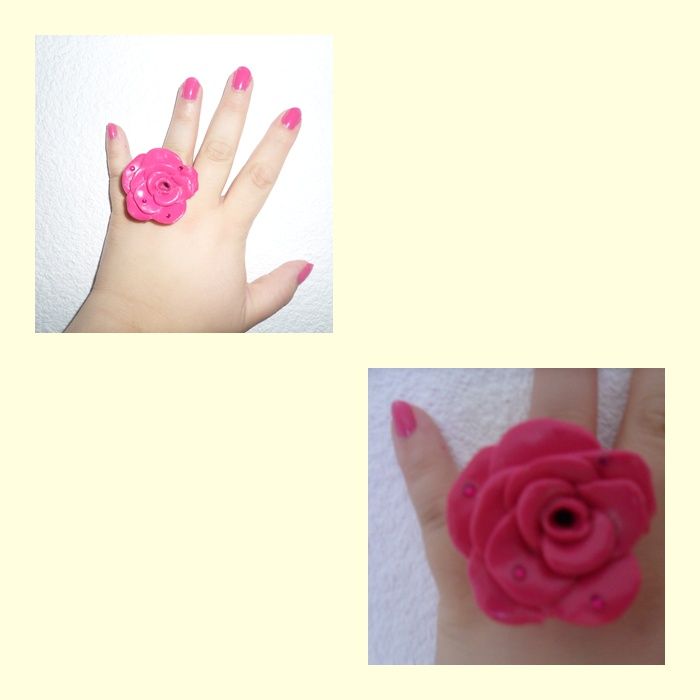 J'ai réaliser cette bague en forme de rose avec de la fimo,je suis plutôt satisfaite du résultat pour une première fois.